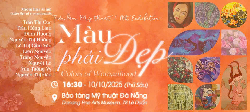 Chào mừng kỷ niệm 95 năm Ngày thành lập Hội Liên hiệp Phụ nữ Việt Nam (20/10/1930 – 20/10/2025) và 15 năm Ngày Phụ nữ Việt Nam (20/10/2010 – 20/10/2023), tại Bảo tàng Mỹ thuật Đà Nẵng (thuộc Bảo tàng Đà Nẵng), nhóm 10 nữ họa sĩ Đà Nẵng gồm: Trần Thị Cúc, Trần Hồng Lâm, Đinh Hương, Lê Thị Cẩm Vân, Nguyễn Thị Đào, Hường Nguyễn, Liên Nguyễn, Trang Nguyễn, Văn Tường Vy và Nguyệt Lê, đồng tổ chức khai mạc triển lãm mỹ thuật với chủ đề “Màu phái đẹp”.