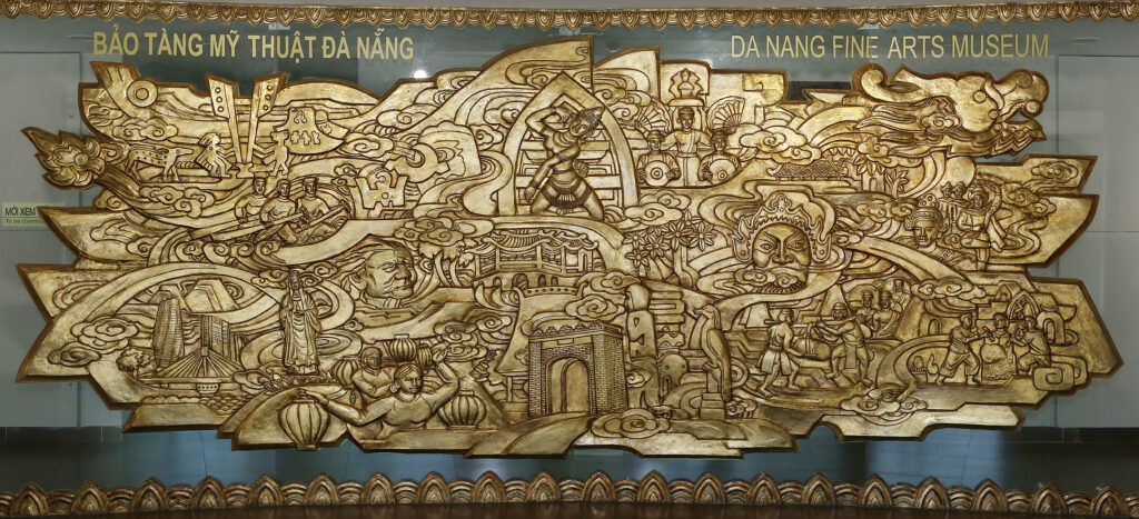 Nhìn trong tổng thể các mảng điêu khắc đó là khái quát quá trình phát triển Mỹ thuật Đà Nẵng và khu vực miền Trung – Tây Nguyên, nơi giao thoa mỹ thuật thuộc các nền văn hóa: Văn hóa Đông Sơn và Văn hóa Sa Huỳnh. Đây là một số hình ảnh tiêu biểu của hai nền văn hóa lớn với hình tượng hoa văn trên trống đồng Đông Sơn bên cạnh những những chiếc khuyên tai hai đầu thú, khuyên tai ba mấu rất đặc trưng của văn hóa Sa Huỳnh. Và tiếp theo là sự tiếp biến giữa Văn hóa Chămpa và Văn hóa Đại Việt, thể hiện trong bức phù điêu này, tiêu biểu cho mỹ thuật Champa là hình tượng vũ nữ thiên tiên Ápsara, người múa quạt, chơi trống Baranưng và mỹ thuật Đại Việt với những hình ảnh về nghệ thuật Tuồng truyền thống, các đình chùa Việt… Bên cạnh đó còn có sự tiếp nối của mỹ thuật thuộc văn hóa các tộc người thiểu số Môn – Khơme ở Trường Sơn – Tây Nguyên với một số hình tượng như “nhà Rông”, “tượng nhà mồ”… Không những thế, Mỹ thuật Đà Nẵng và khu vực còn mang dấu ấn bi hùng qua hai cuộc kháng chiến trường kỳ chống ngoại xâm.